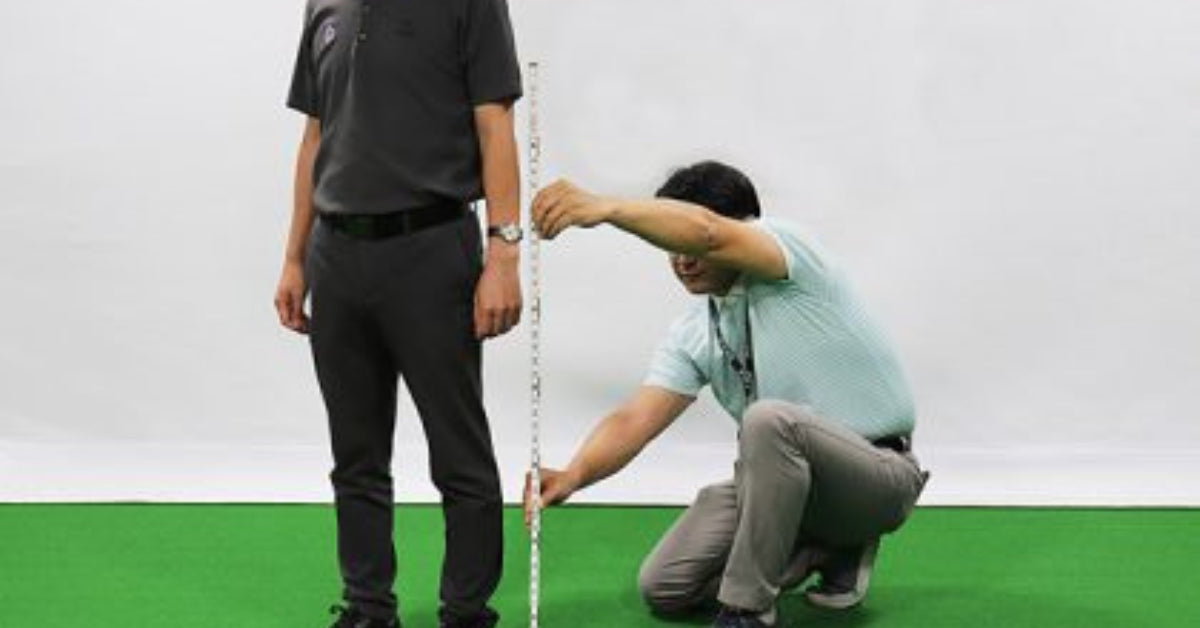 身長、手首から床までの長さを測定します。ゴルファーの体格は身長、腕の長さ、自然な姿勢など千差万別。つまり、フィットするクラブもそれぞれ異なります。